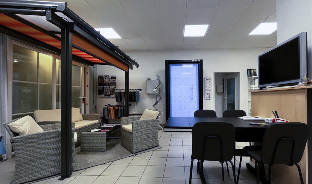 In unserem einladenden Ausstellungsraum erwartet Sie eine breite Palette an Produkten – von hochwertigen Fenstern und Türen der Marke WERU bis hin zu modernen Vordächern, Terrassenüberdachungen, Sonnenschutzanlagen, Markisen und Insektenschutzsystemen. Zudem finden Sie bei uns eine große Auswahl an Beschlägen für Fenster und Türen. Lassen Sie sich von unserem engagierten Team kompetent beraten und entdecken Sie die vielfältigen Möglichkeiten, Ihr Zuhause noch komfortabler und stilvoller zu gestalten.